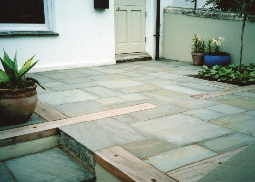 Sandstone Paving Cornwall with rendered walls and hardwood features.